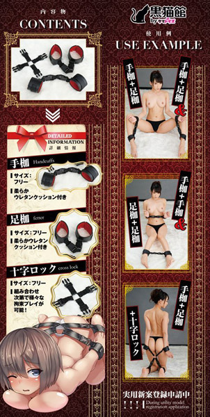 可能性は無限大!アイデアと工夫次第で幾通りもポージングさせられるSM拘束具セット。●SMプレイに役立つ拘束具シリーズ●ブラックレザー調で雰囲気も満点●内側は赤いウレタンクッション製●面ファスナーで着脱&サイズ調節●サイドリリースバックルで全連結●リング固定済み十字ロックパーツ●手枷・足枷ともにフリーサイズ●シリーズ内どれでも連結可能。どんな体位もどんな複雑体勢もあっという間に完了!初心者さんでも扱いやすい簡易バックル仕様のSM用拘束アイテム。両手と両足を各固定はもちろん、十字パーツを使えば両手両足を一気に拘束できます。●メーカー型番:KNK-067