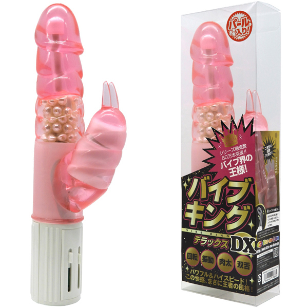 バイブ界のキングが降臨!パワフルさとハイスピード感で快感の頂点を目指す、大人気シリーズ新作の「バイブキングDX」。力強くかき回す回転機能&芯まで響く強力振動に加えて内蔵パールの刺激をプラス!肉感たっぷりな弾力のある三段ボディと2枚舌のクリバイブで快感の嵐を巻き起こす電池式バイブです。単三電池を3本使用、ピンクカラー