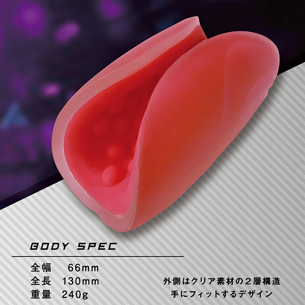 時間を掛けて限界を超える。スローオナニー専用オナホール「ズリセン」!あなたは、「スローオナニー」という言葉を知っていますか?贅沢にたっぷり長い時間をかけて、ゆっくりじっくり丁寧にプレイを楽しむ、それがスローオナニー。「ズリセン」は、そんな新しいプレイスタイルのために生まれたオナホールです。挟み込むホットドッグ形状と、まったり刺激とで、スローオナニーをサポートします。貴男をパックリと挟んで包むホットドッグのパンズような形状が特徴的です。通常のオナホールにある挿入行為が不要で挟むんでコスるだけで楽しめるのでビンビン状態でなくても使用可能。半ビン状態から優しいアプローチで、ゆっくりと気分を高めることが出来るのです。長い時間を楽しめるよう、まったりとした刺激も特徴的。最初は優しくスリスリ、盛り上がってきたら裏をズルズル、さらに高まってきたら頭をグリグリとまるで磨き上げるようにじっくり楽しめます。焦らすようにジワジワと快感を貯め込むことでフィニッシュ快感は遥かな高みに到達するはず。すぐにフィニッシュを求めず、そこに至るまでの刺激を楽しみ続け、より深い快感を目指す贅沢な流儀。それが新しいスタイル、スローオナニーなのです。強い刺激やビンビン持続も必要ないので、「早さ」や「タフさ」のトレーニングにも!?「イボ」は、大きなイボイボ突起がびっしり配置されたデコボコ快感。弾力たっぷりな肉感素材。クリアカラーに包まれたビビッドなレッドカラーが絶妙な高級感を演出。手コキと相性ぴったりなツブツブのまったり刺激をお楽しみください。