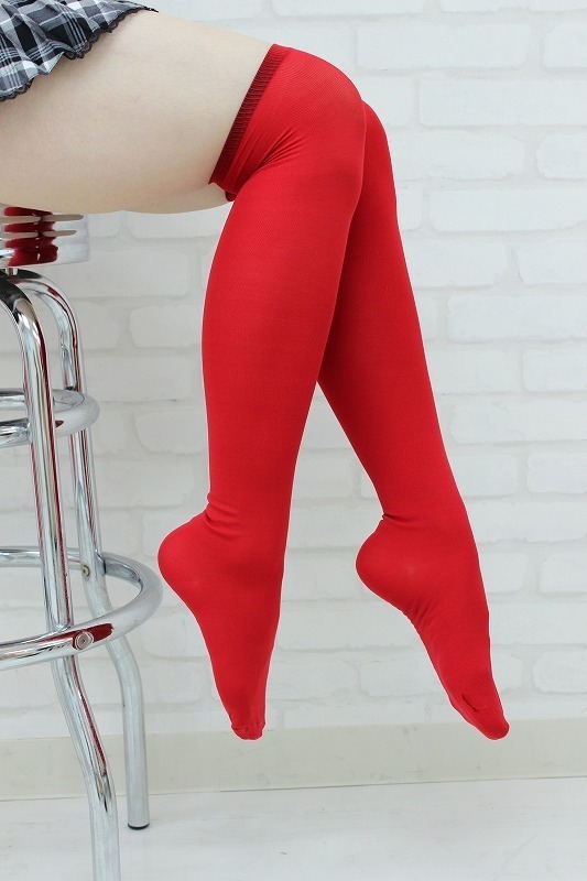 コスチュームのアクセントに!ポップなレッドカラーのニーハイ。メイド服やキャラクターコスプレに合わせやすい無地タイプ!もちろん普段使いにもOKです!何か物足りない…なんて時にも重宝する無地のニーハイソックスです。