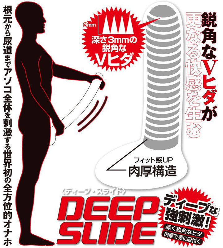 驚異の伸縮オナホがパワーアップ!「ディープスライド」非貫通型は、鋭角なヒダがもたらす強烈な刺激が特徴です♪手で握らずに素材の伸縮を活かし、新感覚のバキューム快感を楽しめるオナホール!内部には高さ3ミリの横ヒダがずらりと並び、ディープな刺激を生み出します。肉厚な素材との組み合わせで絡みつき感も抜群!内径の狭い設計がフィット感を高め、ホールをスライドさせることでバキューム感も増します♪ローション漏れの心配もなく、後処理も簡単でストレスフリーなオナニーが楽しめます。肉厚感とバキューム感をパワーアップさせた快適なオナホでハードな刺激を存分にお楽しみください。