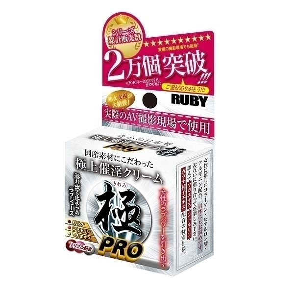 累計販売数2万個突破の大ヒット催淫クリームシリーズに「催淫クリーム極PRO」が新登場。人気の成分はそのままに新たに3つの成分をトリプル配合。PROの名にふさわしい商品に仕上がりました。お互いに塗り合って極上のひと時をお楽しみください。
