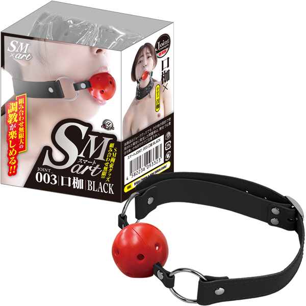 バリエーションは無限!ジョイント式SM拘束シリーズ「スマート」の口枷。シリーズ全パーツ同士の接合が出来る斬新なSMグッズ!素材は合皮、肌に当たる内側はソフトベロア調素材を採用!調節ベルト穴の数を通常より多く設置した事により、女性から男性まで拘束が可能になりました。口枷のボールサイズは大きめ、独自の調教スタイルで様々なSMプレイをご堪能頂けます。