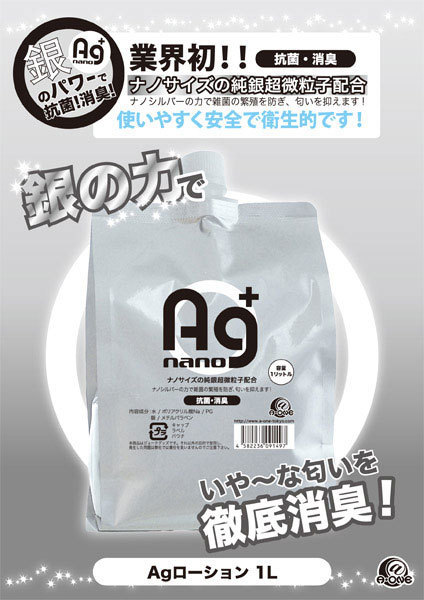 業界初!ナノサイズの純銀超微粒子を配合した抗菌&消臭ローション(1L)。ナノシルバーの力で匂いの元になる雑菌の繁殖を防ぎ、いや〜な匂いを徹底消臭。ゆる過ぎず滑らかな粘度で、使いやすく安全で衛生的!オナホールのメンテナンスにも最適な抗菌ローションです。こちらはアルミパウチ1L入りの詰め替えタイプ。