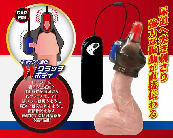 かつてない衝撃!強さの異なるダブルローターを搭載した亀頭オナグッズ「ブラックロック Wインパクト」。異なる振動を尿道と裏スジの2ヶ所同時に当てる事で、亀頭への刺激に立体感が加わり深みのある快感に!ローターの振動パターンは連動して変化する7段階振動を搭載。亀頭キャップ自体もローターを裏スジと尿道へ挟むように配置できるWクラッチボディへと進化!裏スジへは覆うように、尿道へは突き刺すように直接振動を与えます。ハンズフリーで楽しめる大人気『ブラックロック』シリーズの亀頭責めグッズ!各ローターの装着位置を変えることで違った刺激を楽しめます。