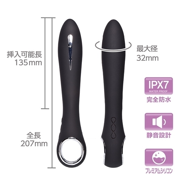 ビリビリ低周波が刺激的な話題の膣トレバイブ、心地良いビリビリに強力な振動で他では味わえない快感を楽しめます。シンプルなストレート形状に肌心地の良い高品質マットシリコンで滑らかな感触。IPX7の完全防水性能だからしっかり洗えて衛生的に遊んで頂けます。振動・ビリビリ刺激は個別に操作が可能で、ビリビリ7パターン。振動12パターン。150分充電で最大60分使用可能(使用環境によって大幅に増減します)●カラー:ブラック